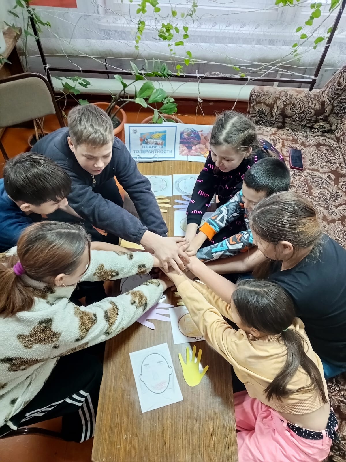 Час дружбы «Давайте уважать друг друга» посвящен Международному дню толерантности. Основной целью проведения часа было закрепить знания уважать других людей, быть дружнее и вежливее. Поговорили о том, как слово «толерантность» определяется на разных языках земного шара. Провели игровые тренинги направленные на взаимодействие: «Человечки-улыбки», и «Наши ручки», которые подчеркнули, что у каждого человека есть уникальные особенности, их нужно уважать. Чтобы закрепить основные идеи толерантности обсудили пословицы о дружбе: «Один за всех и все за одного», «Не имей 100 рублей, а имей 100 друзей».